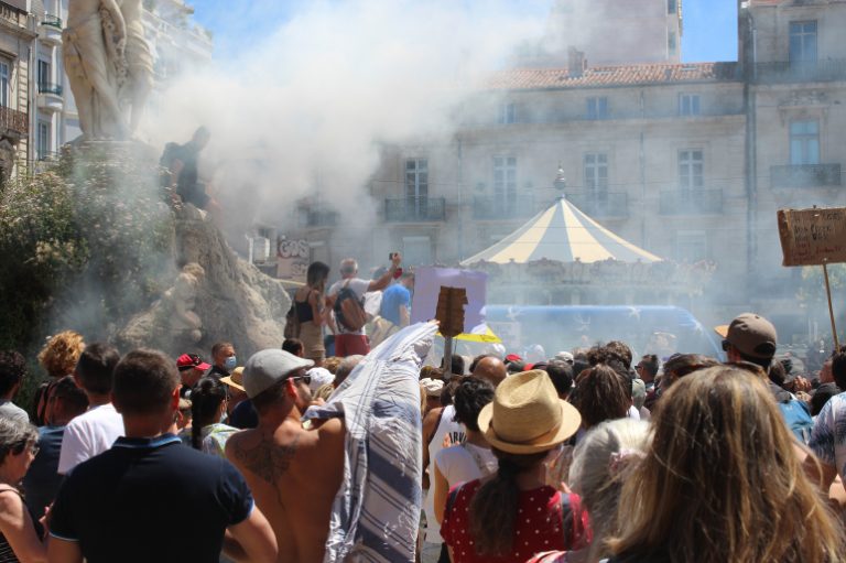 Only the “emergency” of the Covid crisis pushed it, more or less, off the streets. The spirit of revolt has not been very much in evidence in France since March 2020, with the population divided and fearful, as elsewhere. But now, with the announcement that vaccine passports will be required for cafés, restaurants, leisure centres, shopping malls and trains, something seems to have snapped. The arguments about viruses and masks and lockdowns now seem less relevant in the face of this chilling assault on the most fundamental of human rights. Even the jab itself is not really the issue any more, with those who have already had it joining in the protests against the totalitarian laws due to come into place on August 1. I was impressed by the turn-out for the emergency protest in Montpellier on Wednesday July 14, but Saturday’s numbers were on a completely different scale. Even the authorities at the Préfecture admitted that there were 5,000 on the streets on a hot Mediterranean afternoon. The crowd represented a very wide cross-section of the local population. The Gilets Jaunes had already started this process of breaking down the old “left” and “right” political divisions in favour of a broad popular struggle against the power elite. But the process has now clearly gone a step further, with a new mood of defiant unity that must be striking fear into the hearts of Macron and his cronies, not to speak of Klaus Schwab and the global string-pullers. The sense of possibility has been increased by the news that the French Minister of Justice Eric Dupond-Moretti is under criminal investigation for allleged “conflicts of interest”. “We don’t want the pass sanitaire!” chanted the thousands in Montpellier. “Macron resign!” “Résistance!” “Liberté!” It was the same picture everywhere, with massive numbers not just in Paris, but all across France, as this compilation sets out. The people took to the streets in Aix-en-Provence, Quimper, Annecy, Lyons, Perpignan, Nice, Metz, Lille, Dijon, Caen, Toulouse, Reims, Saint-Brieuc, Pau, Strasbourg, Rouen, La Rochelle, Brest, Mulhouse, Bayonne, Narbonne, Saint-Étienne, Albi, Nîmes and La Réunion. They protested in Toulon, Marseilles, Bordeaux, Nantes and Rennes. Tear gas was used on protesters at Besançon and demonstrators blocked a main road at Chambéry. The politics of division seem to be failing as the French people come together to defend the principles of liberté, égalité and fraternité on which their republic is supposed to be founded. I bumped into a couple of anarchist friends on the protest and also took a leaflet from a group called Arme Révolutionnaire Marxiste. This condemns the “Apartheid sanitaire” being imposed by the state: “Treated like fearful cattle, ever more controlled, divided and stripped of our freedoms, we are condemned by power to still further exploitation. “But this time the government’s medicine is not going down, there are more and more of us all the time who understand the reality of this medical mascarade, just as we understand better and better the scam of elections”. Insisted Gilet Jaune Michelle: “This vaccine passport just can’t happen. We can’t give up”. |