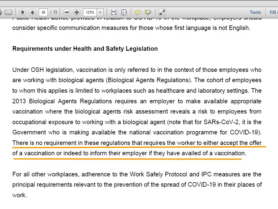 I would also advise that my inalienable rights are reserved.’ The point is that if they CANNOT provide that information you’ve NOT refused… Help with Covid-19 Related Issues around Liability and AcceptanceResources and letters – Vaccine Liability and Conditional Acceptance Letters See the three documents at the top of this page Attached are links to letters and resources seeking to assign responsibility to those requesting your compliance in regards to Covid-19 injections, mask wearing and testing. A letter of Conditional Acceptance is a way to give your agreement to something through requesting that another party first meet certain conditions that you set; if those conditions are not met then your agreement need not be given. Liability – this seeks to assign liability to organisations or officials for their actions in regards to their insistence on certain actions from you which do you harm. Although these letters are primarily UK based they could be adapted to reflect personal circumstances and other geographies with the right advice. See this doc Vaccine_Liability_Letter_and_Templates.docx (23 kb size) which contains links to more templates and letters. The Nuremberg CodeYou can find a PDF copy of the The Nuremberg Code here No Requirement in Ireland to Take the Vaccine for WorkThese screen shots from the Irish governments document on Work Safely Protocol COVID-19 National Protocol for Employers and Workers. (PDF here says employees do NOT have to take the vaccine. The media hype though has suggested it would be forced and many went ahead and took the clot-shot anyhow because of the pressure and have seriously injured themselves and possibly sterilized themselves too. ![]() ![]() ![]() Your Unalienable Rights![]() For broader links, see Covid Links |